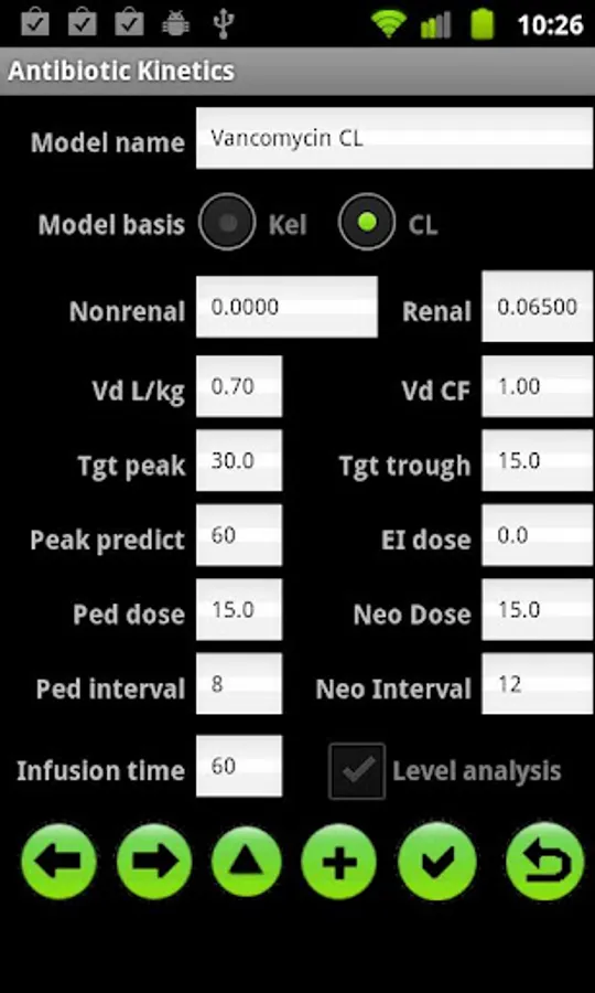 AbPK also includes a drug model editor which enables you to add multiple drug models for any 1-compartment open model. To illustrate this utility, a Ceftazidime model is included.