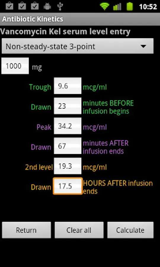 AbPK performs pharmacokinetic dosing of common antibiotics for which serum levels are monitored: aminoglycosides and vancomycin.