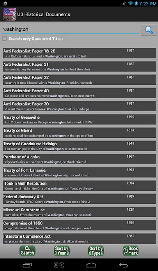 This app contains over 400 of the most influential documents, laws, speeches, and court cases in U.S. history. See the dramatic items which shaped our nation’s history in this extremely readable and convenient format.