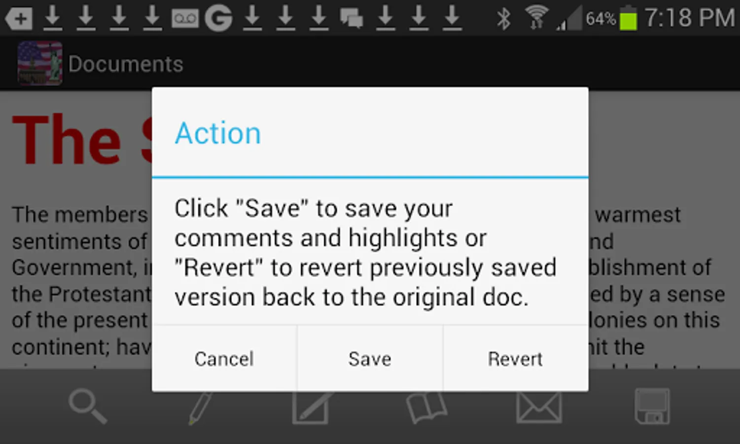 Besides just reading documents, this app has many useful features, available on an easy-to-use graphical toolbar. Includes: