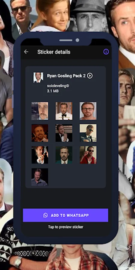 Attention all Ryan Gosling fans! Elevate your WhatsApp conversations with the "Ryan Gosling Animated Stickers" app!