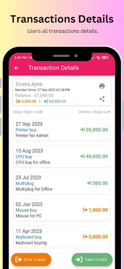 Introducing " mCash Book" - a user-friendly app developed by HR SOFT BD. This is an ultimate app for keep record of daily transactions and costs. With its user-friendly interface and powerful features, you can quickly make a summary of your daily costs and also can able to make summary of transactions with any other person.