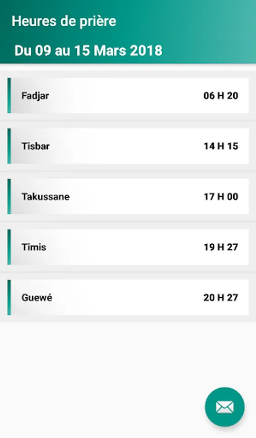 The application can receive prayer times every Thursday in Senegal alert notification and / or SMS. To receive notifications via SMS is simple, just fill the phone number via the notification screen.
