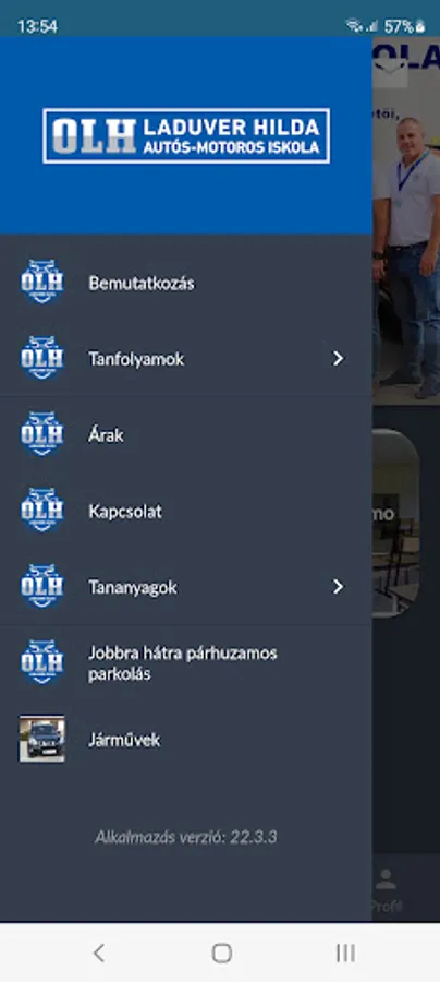 Login process for already registered members of the driving school