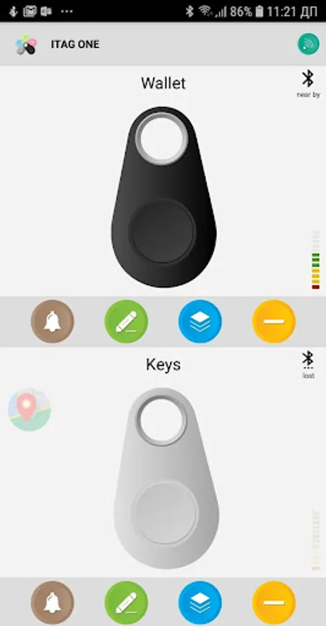 No less use than anti-lost alarm is a search feature. It often happens one knows the wallet is somewhere near by but can not remember where it is namely. No annoying anymore. Just click the iTag image and the real iTag device will start buzz - letting a human do not event start to become nervous. Needless to say it works vice-versa: double clicking on real iTag device makes the phone to ring clearly pointing out where it is. From our experience having a phone with installed iTag One and at least 2 iTag devices turns the life to be much more happy than it used to be before.