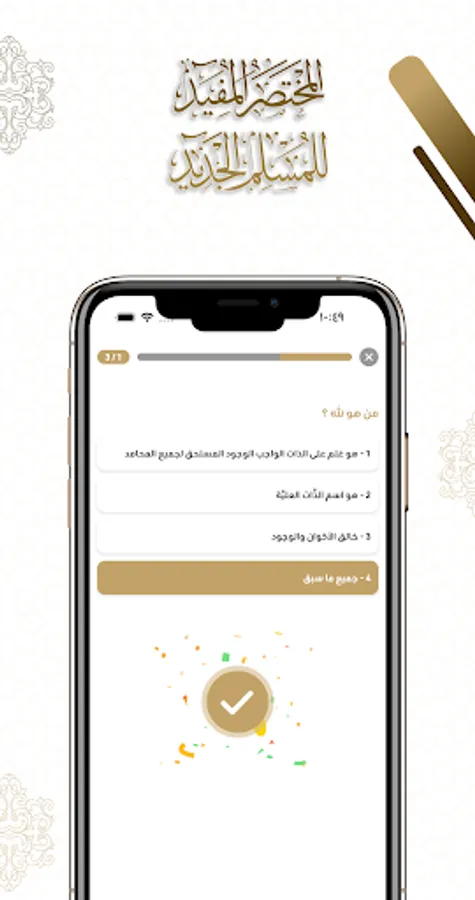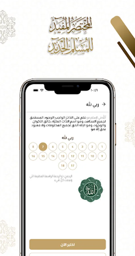 يقدم هذا التطبيق مــا لا يسع المسلم الجديد جهله بداية إسلامه بأسلوب مختصر يوضح له معالم هذا الديـن العظيم وقد تم الحرص على أن يُعرض محتواه فـي عدد مـن القوالب يجمعها الإخراج الفنـي عالِ المستوى وقد تم ترجمته إلى عدد مـن اللغات العالمية والتي ستصدر تباعًا ويتم إضافتها له .