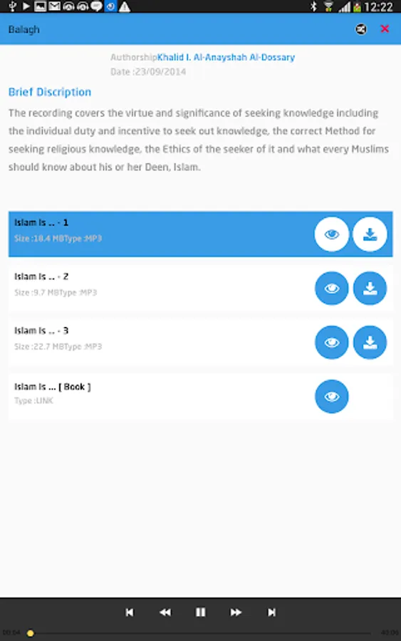 In the name of Allah, the Most Gracious, the Most Merciful. The prophet (PBUH) said: "Convey from me even a verse". Balagh application is as an aid which helps a Muslim to convey the message of introducing Islam & its tolerance in world languages. The materials chosen are about introducing Islam, the Prophet Muhammed (PBUH), the Quran, and many other topics related to these basic topics; to enable a Muslim to communicate with non-Muslims, explain the elevated message of Islamic teaching, and clarify the true picture of Islam with guiding to the references. this application has been designed to be easy and simple in Arabic format, to enable you to do the following: 1- language selection. 2- Topic. 3- Then send the links of the written, audio, and video materials chosen with care and attention, to suit the one who you call to guidance. As well as you can share the application through Facebook and Twitter, in addition to other features which make this application special.
