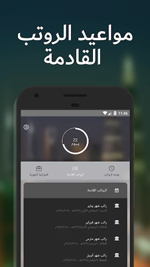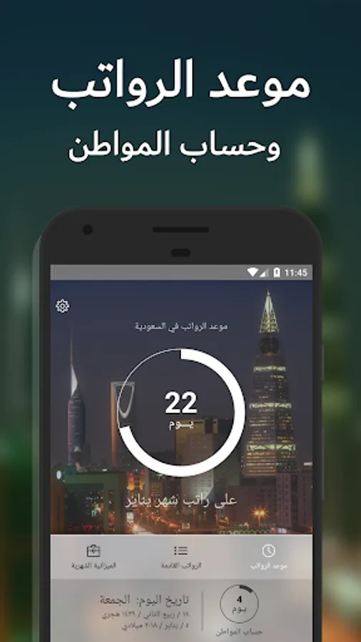 This program offers you a number of days remaining salary and dates of salaries coming in Saudi Arabia, and the date of the citizen account,