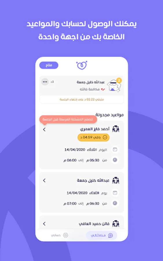 (Famcare Consultants) application is considered a user interface for consultants to better provide family and psychological counseling services to facilitate communication service and provide advice between the consultant and the beneficiary through many features that facilitate the process of managing appointment reservations, communicating with clients, evaluating their experiences and others.