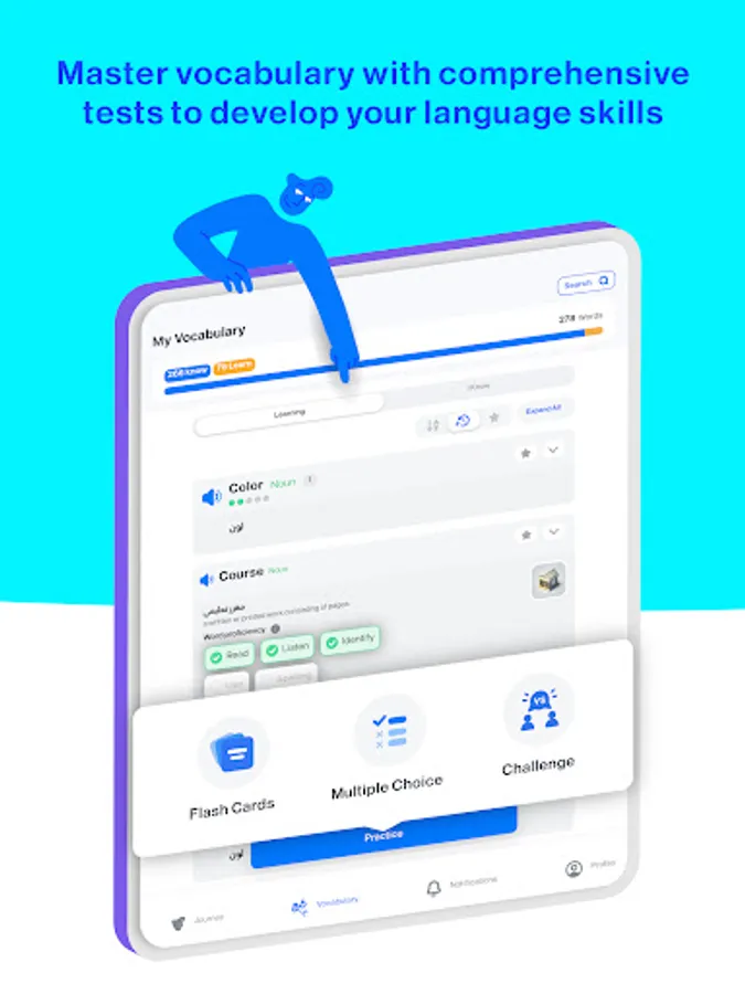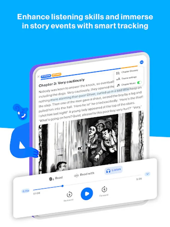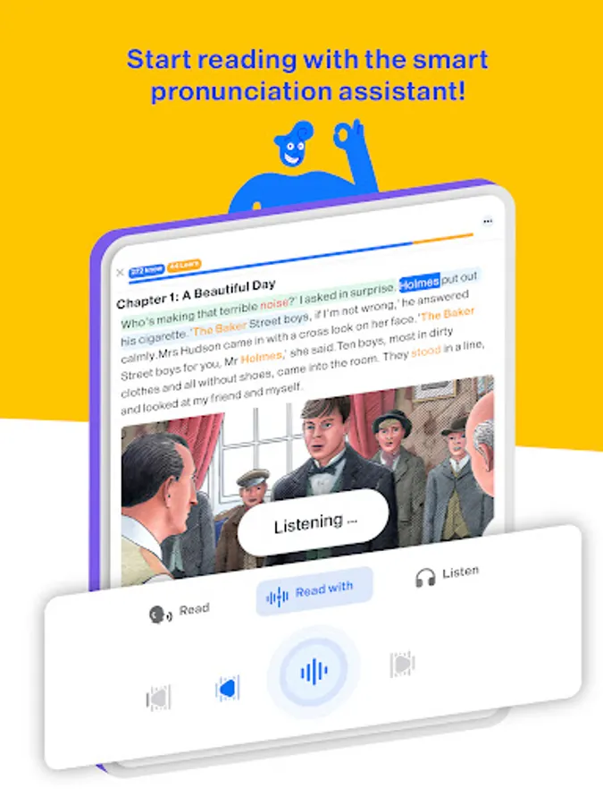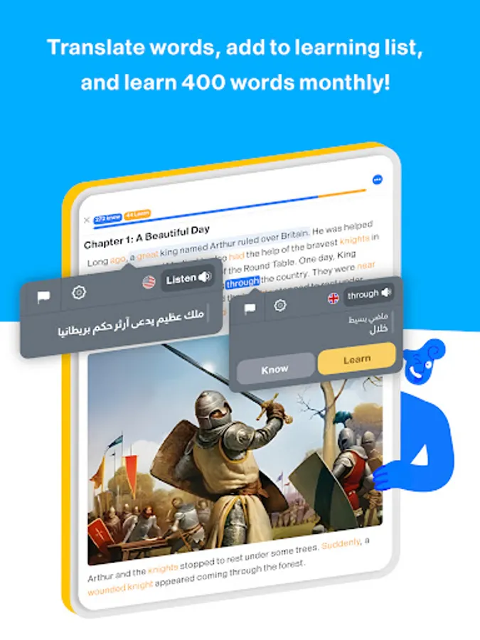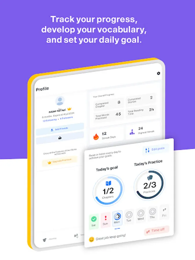 The first app in the Arab world for English language enhancement through captivating storytelling. It tracks your Progress from basic to professional proficiency while enjoying engaging tale and enhances Oxford content. Acquire 400+ words monthly while honing vocabulary and grammar through speaking, reading, and listening in English, now teaching English has become easier without restrictions..