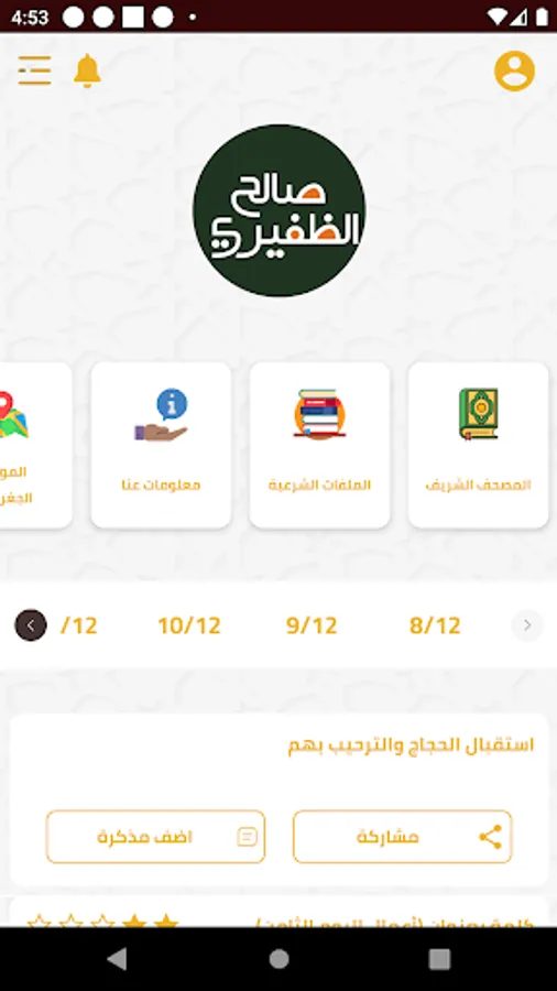 The wonderful application, which is of interest to every pilgrim in Saleh Al-Dhafiri Company to help them perform the occasion of Hajj and provides distinguished services to them, continuous communication with the campaign and more wonderful services, including (gathering points - campaign program - cultural competitions) and others.