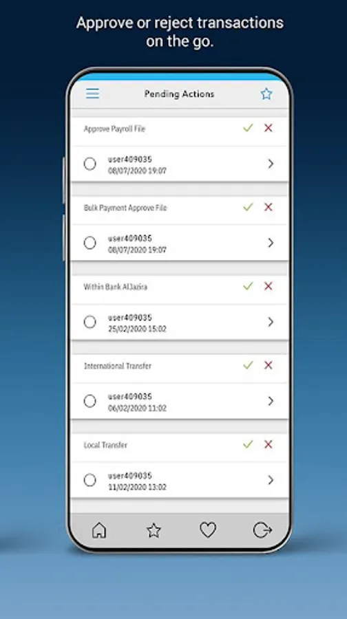 The application allows to carry out your commercial banking easily and safely from anywhere, whether it’s a transfer or an approval, in addition to the following services: