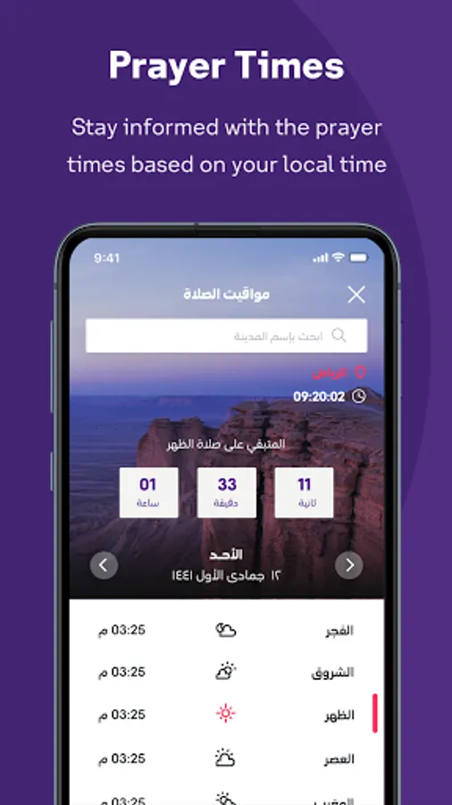 - Check the prayer times, as well as the exact minutes left for the call of prayer