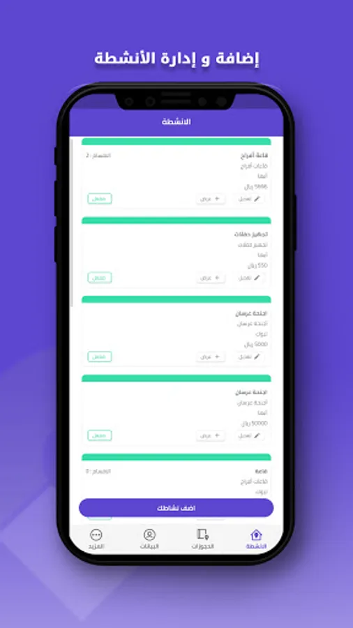 An application that enables activity owners to register and manage their activities with ease and ease. It allows them to view new reservations and previous reservation reports. It also enables them to modify prices, submit marketing offers, close the days that have been booked from outside the application, and many advantages