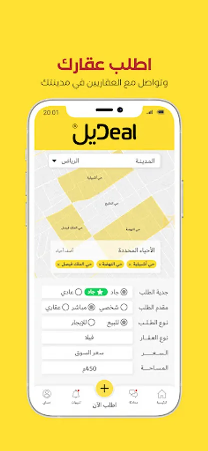 In the Deal application, we seek to increase the effectiveness of communication in the real estate sector by collecting all real estate requests in one place to make it easier for (brokers and real estate developers) to provide their services in a distinctive and direct manner, and to facilitate (for real estate applicants) the effort, time and money to reach the appropriate real estate offers that meet their desires.