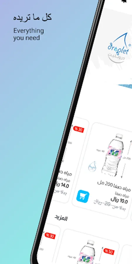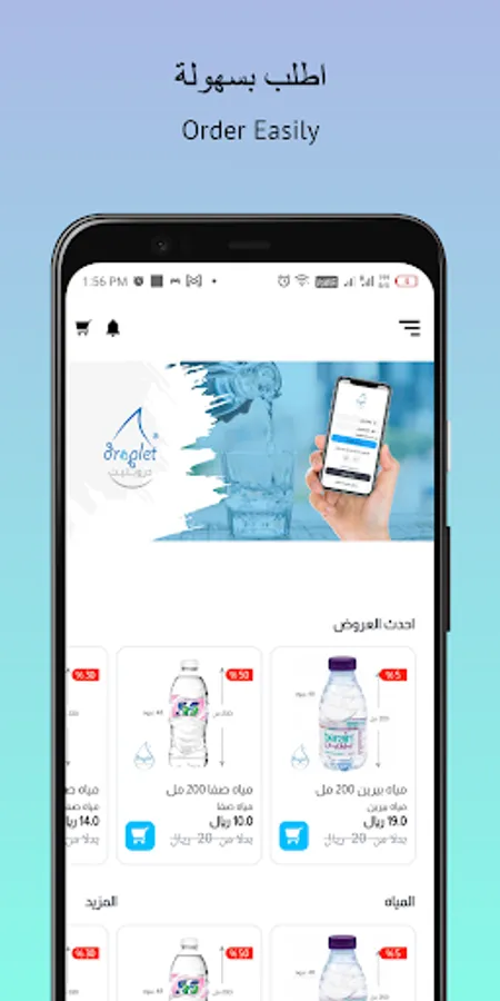 Droplet application provides its customers with the purchase of water products and soft drinks and everything related to parties and events any time.
