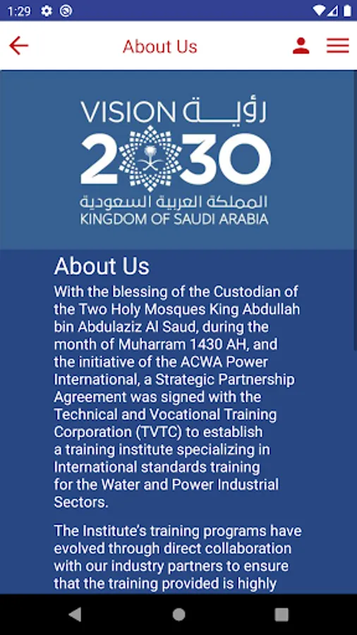 With the blessing of the Custodian of the Two Holy Mosques King Abdullah bin Abdulaziz Al Saud, during the month of Muharram 1430 AH, and the initiative of the ACWA Power International, a Strategic Partnership Agreement was signed with the Technical and Vocational Training Corporation (TVTC) to establish a training institute specializing in International standards training for the Water and Power Industrial Sectors.