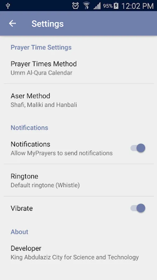 MyPrayers application for Android is developed by King Abdul-Aziz City for Science and Technology.