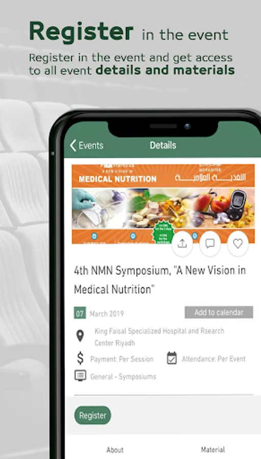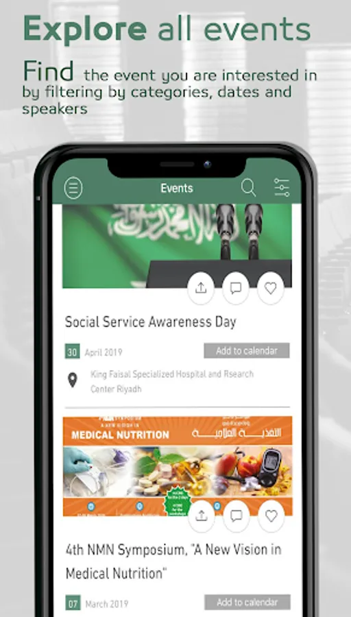 King Faisal Specialist Hospital & Research Center (KFSHRC) arranges many events (conferences, workshops, training courses, symposiums etc.) that are attended by different candidates from all over the world.
