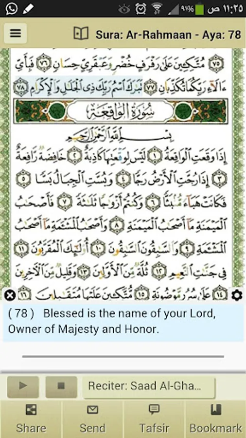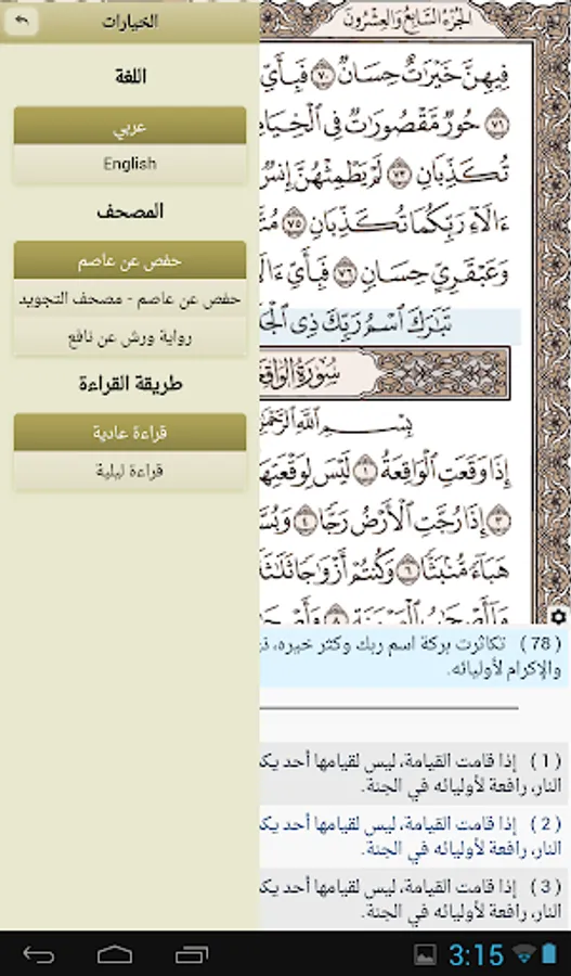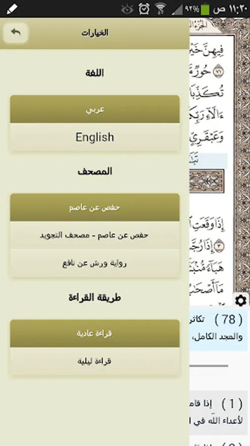 Voice Translation of the Al Quran meanings for two languages (English and Urdu).