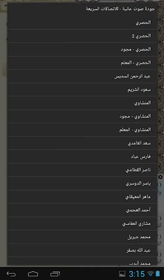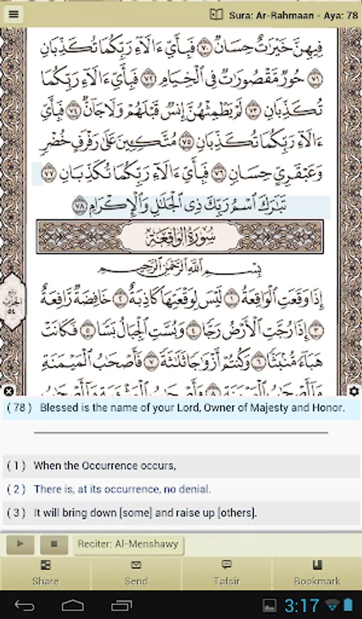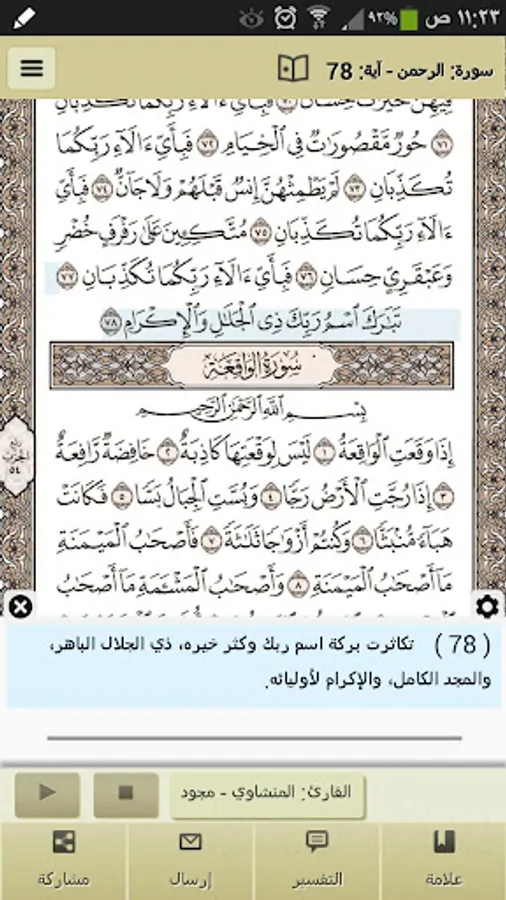 Al Quran recitations by many famous reciters (two of them are by Rewayat Warsh an-Nafei').