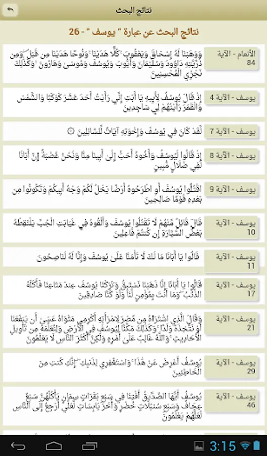 Search through Al Quran text.