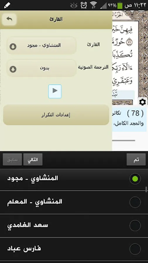 Sync between recitaion and voice translation (repeat the translation after the recitation).