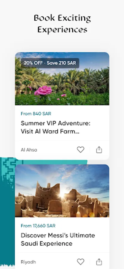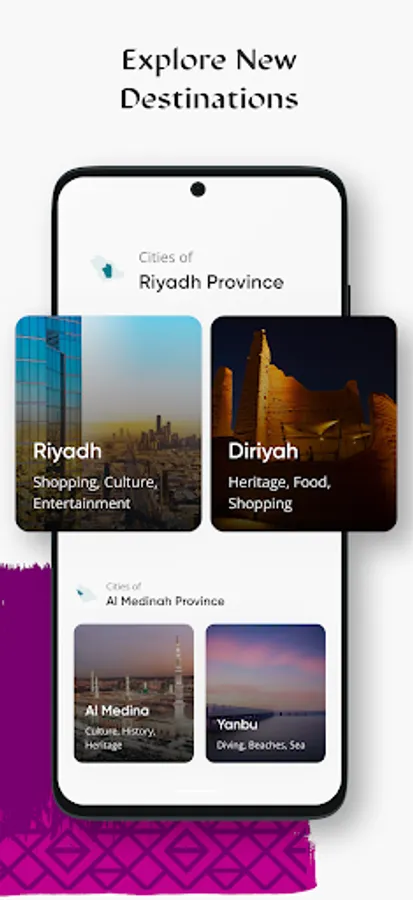 Visit Saudi official app, provided by Saudi Tourism Authority. You can find here all the activities and touristic destinations in Saudi Arabia which is full of history and rich cultural and natural beauty. The app will be your tourist guide for everything such as accommodations, parks, museums and more. The app also provide an interactive map and a year long events calendar.