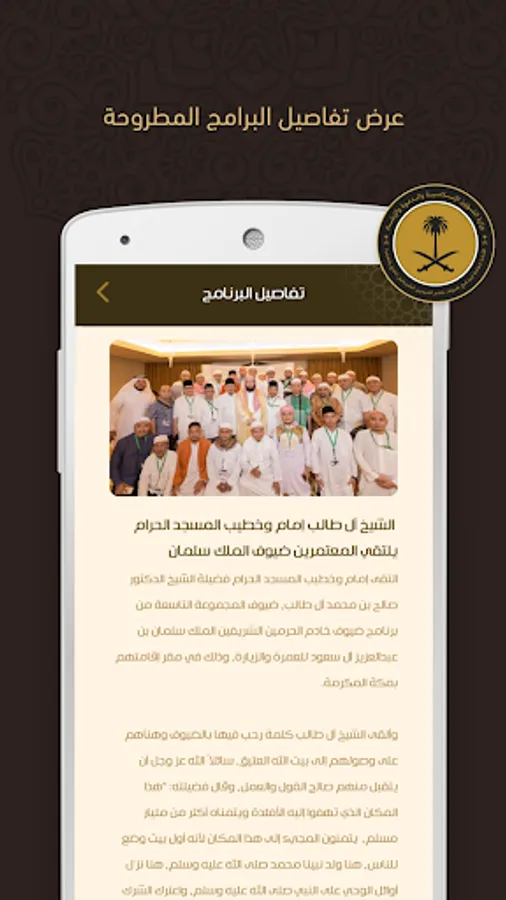 The KING’s GUESTS APP provides the King’s guests with tutorials, latest news, videos, photographs about Hajj and Ummrah rituals. It also provides them access to the latest editions of the magazine of the General Secretariat in a digital format, helping them learn the latest news that is relevant to their journey and the facilities offered to them within the program.