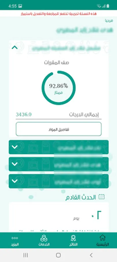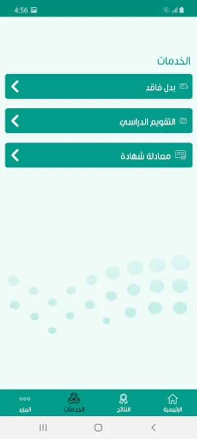 The results application is the application of smart phone devices for reviewing students ’results for the current academic year, and for displaying the student’s file, including the student’s personal and academic data, whether it is for the student himself or his guardians and students, as well as displaying the student’s grades results throughout the academic year’s work and the final student’s result. General education stages, and the ability to view the academic calendar and the upcoming academic event, and to log into the application, the user must be registered and active in the Noor system as a student or a student's parent.