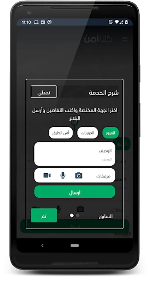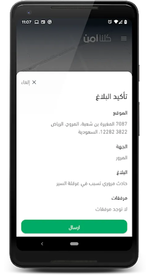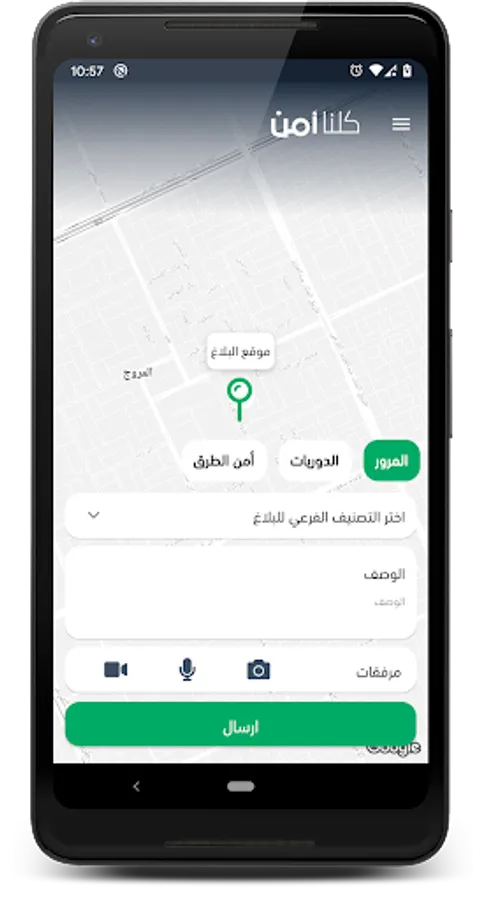 Kollona Amn is a utility that enables all citizens and residents in Saudi Arabia to play the role of a police officer. Which speeds up rescue missions and reduces damages and losses. Citizens and residents can send an incident by attaching a video or a photo or an audio note. In addition, citizens will receive updates on the status of their incidents.