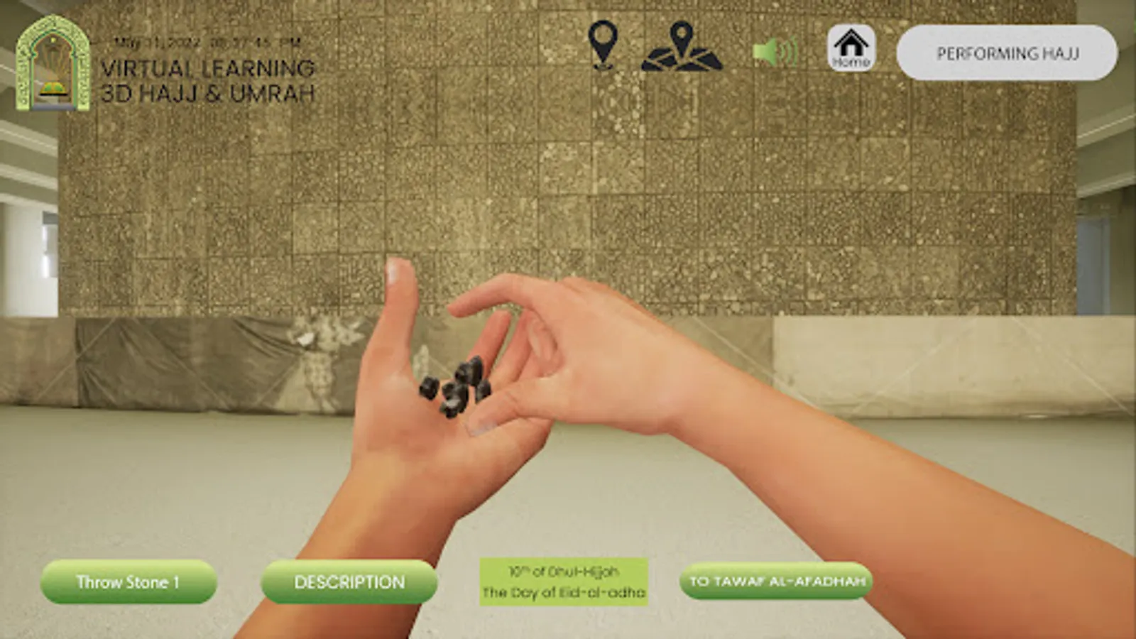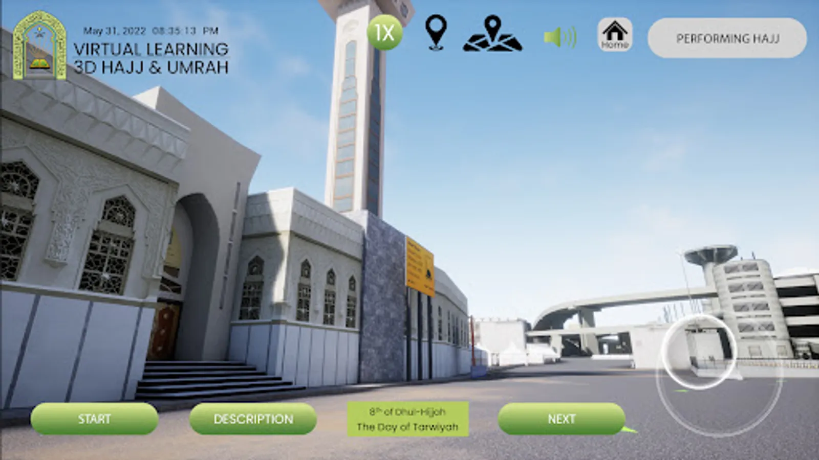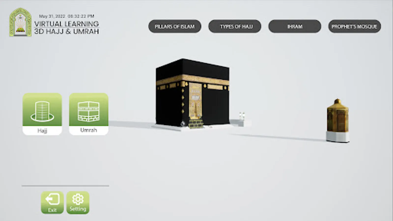 The project is about Virtual learning, Three dimensional, Multilingual and Multi-platform for Hajj and Umrah aims at training users how to perform the rituals of Hajj and Umrah properly, and reduce the common mistakes made by people in the pilgrimage as far as possible, learning step by step techniques using three-dimensional models and virtual reality, and also seeks to show the non-Muslims who cannot visit the holy places, the sense of the pilgrimage.