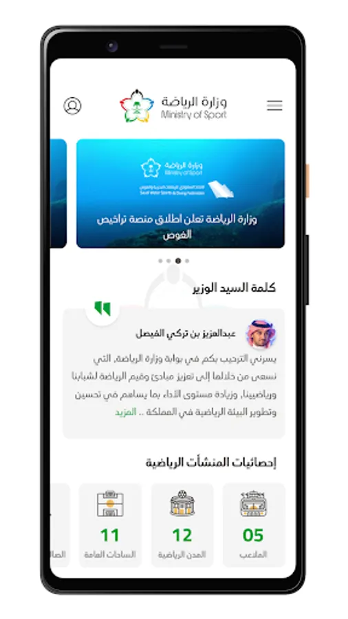 المرحلة الحالية هي الاطلاق الأولي والتجريبي لتطبيق وزارة الرياضة، والذي يمثل أحد القنوات الهامة للوصول والاطلاع على آخر الأخبار والاعلانات والأحداث لدى الوزارة، كما يتيح التطبيق الوصول والاطلاع على اللوائح والأنظمة العامة وأهم الاحصائات والبيانات الخاصة بالمنشآت والنوادي والاتحادات الرياضية، ويمكن من خلاله الاطلاع على محتوى المركز الاعلامي، كما يقدم التطبيق بيانات للتواصل بمكاتب وفروع الوزارة وخرائط للوصول للمواقع.