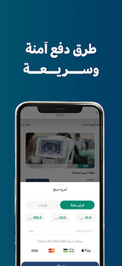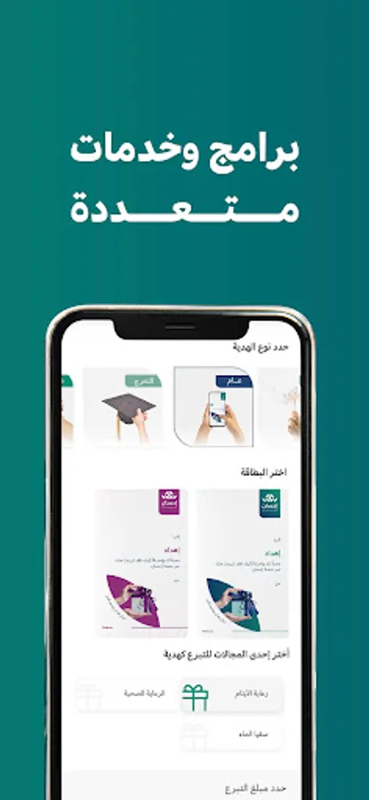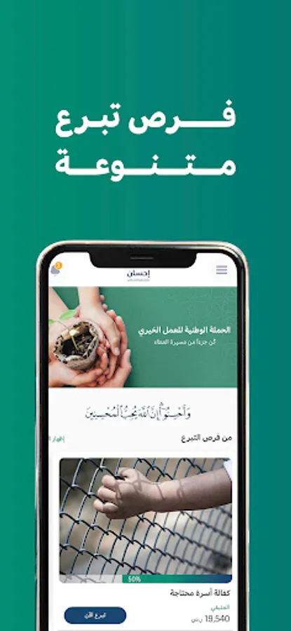 Ihsan App, the national platform for charitable work supervised by eleven official bodies. The application provides an easy and reliable experience for benefactors by offering many opportunities to donate in various fields of charitable work inside and outside the Kingdom for the most deserving groups, thus contributing to maximizing the wage and achieving the values of community solidarity.