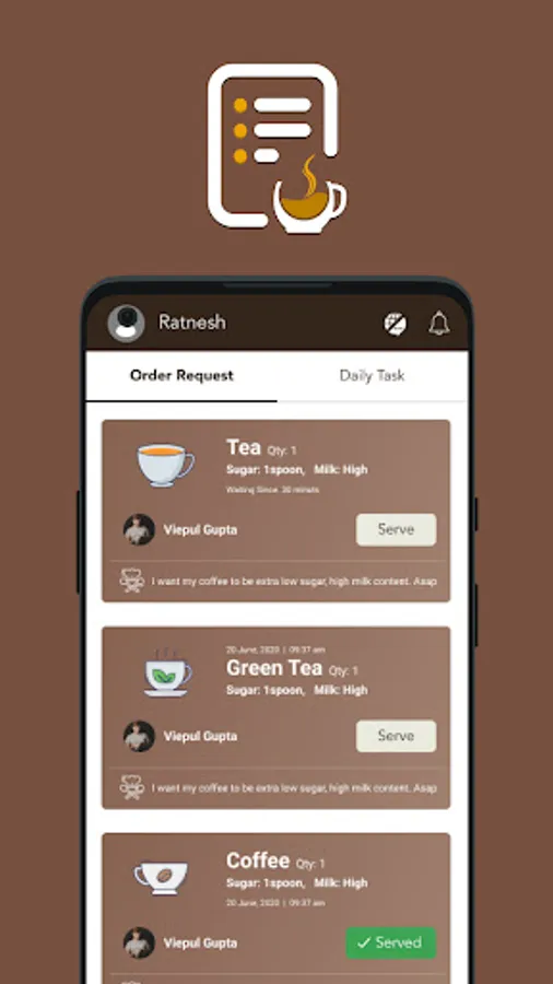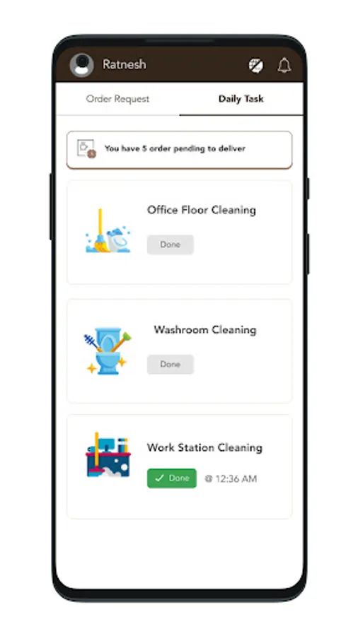 An internal orders system between organisation team members that enables you to order different services inside the office.