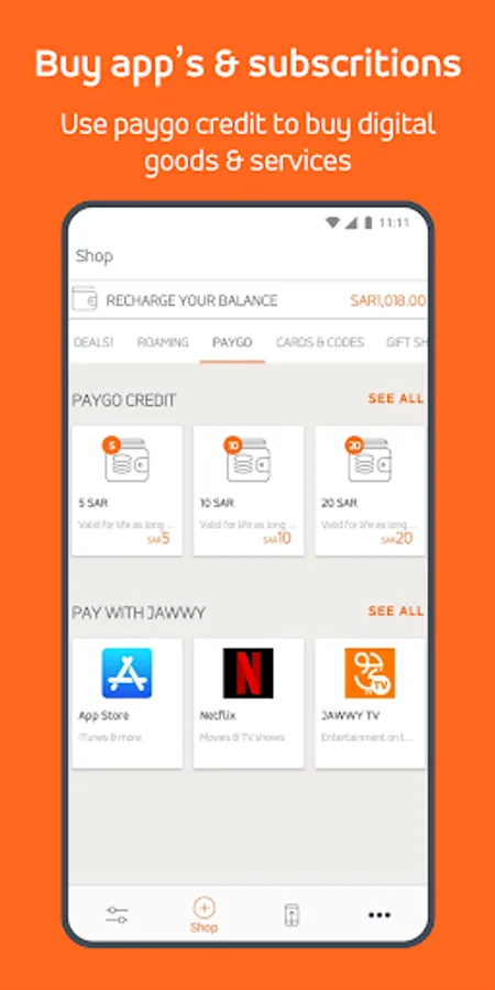 Jawwy from stc is a digital-first mobile product that allows customers to build, manage & share their mobile plan in real time. Users can upgrade or downgrade their plan anytime and add new products all without having to call customer services or visit a store. Users are able to easily buy apps the play store & subscriptions from premium services using paygo credit as well as Gift plans and add-ons to other jawwy users.