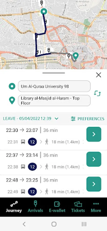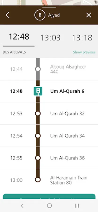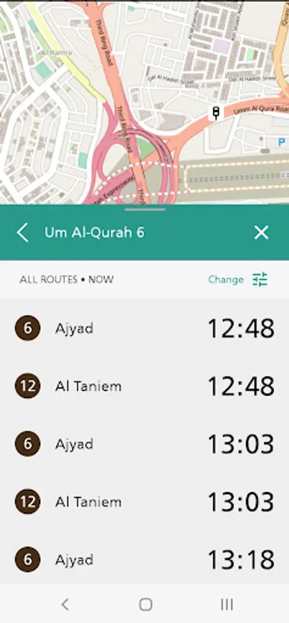 The App features an interactive map of Makkah, on which you can check real-time arrival predictions for all bus stops on all routes in the network.
