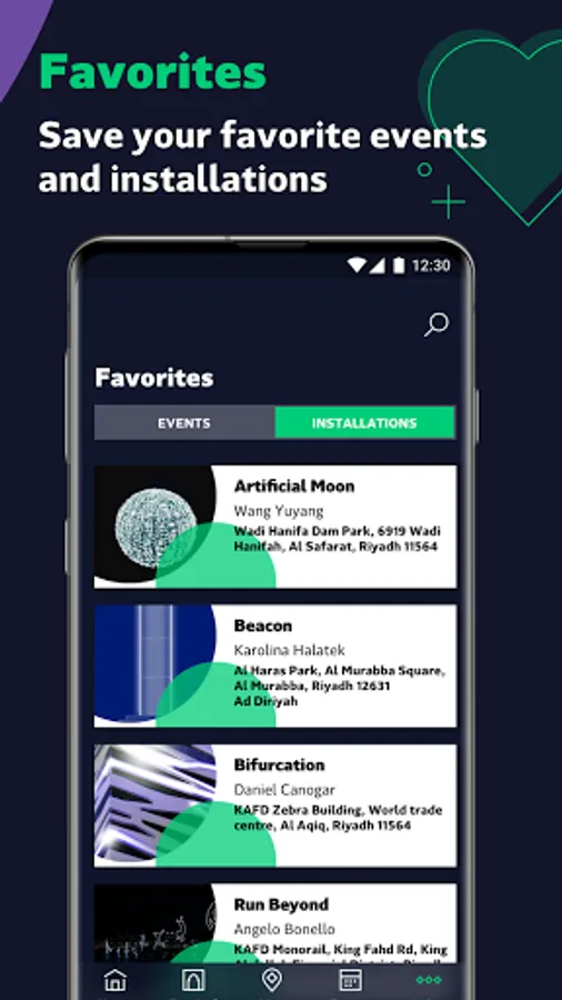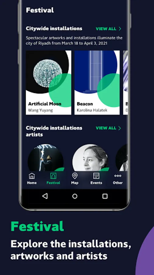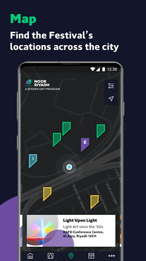 The Noor Riyadh app is the definitive guide to Saudi Arabia’s first festival of light and art illuminating the city of Riyadh each year in March. The app allows you to customize your festival visit and learn more about the featured artists, artworks and installations, and events program.