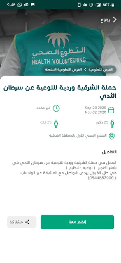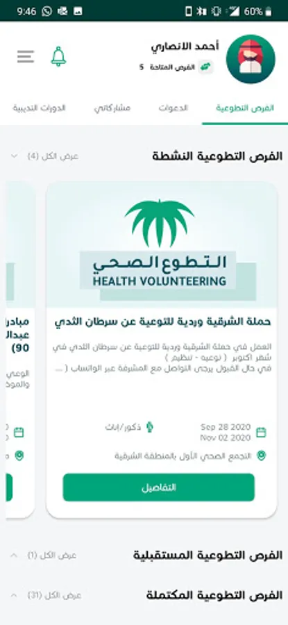Health volunteer app is an application for the volunteers in Saudi Arabia to empower them contributing in the volunteering opportunities in health and other fields.