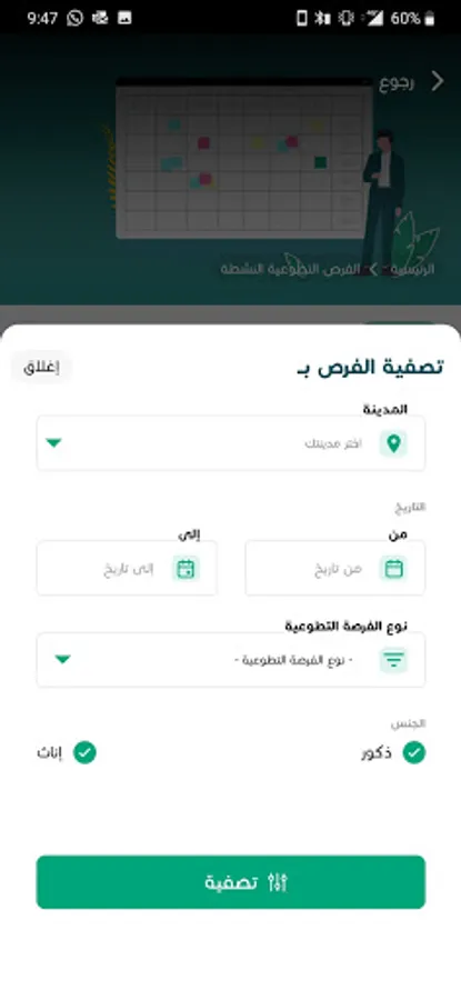 • إرسال طلب الانضمام للفرص التطوعية المتاحة.