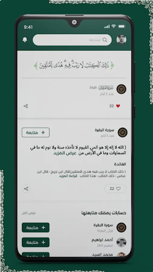 كما يستطيع اي من المستخدمين من الحصول على حساب والبدء في إضافة المحتوى الذي يراه مناسب له في التفكر والتدبر في الآيات وكذلك يستطيع متابعة من يريد من المستخدمين الآخرين او متابعة سورة من سور القرآن الكريم او اية من آياته