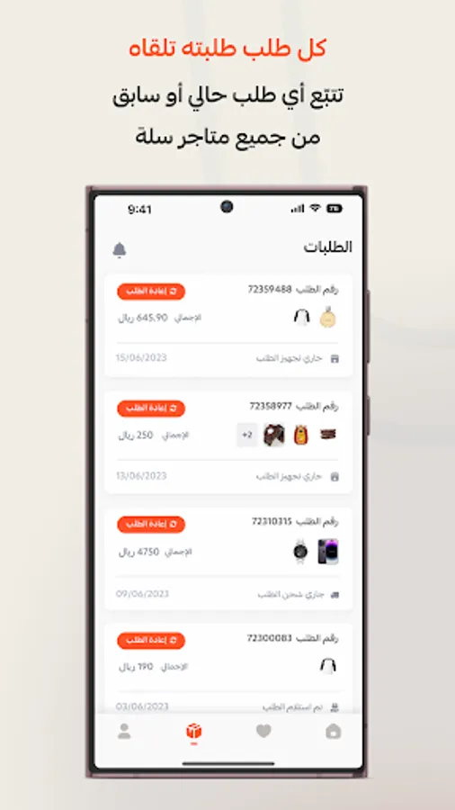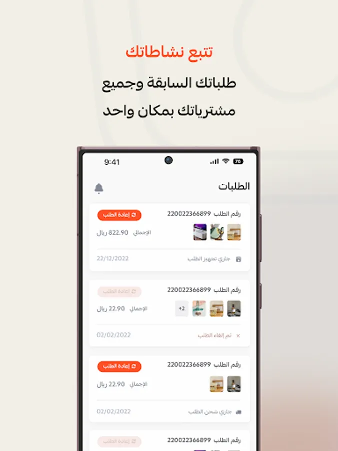 Stay updated of your current order status, and review all previous orders from Salla stores in Mahally.