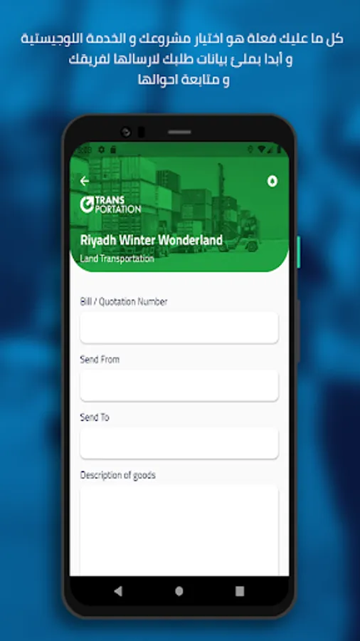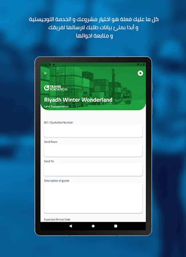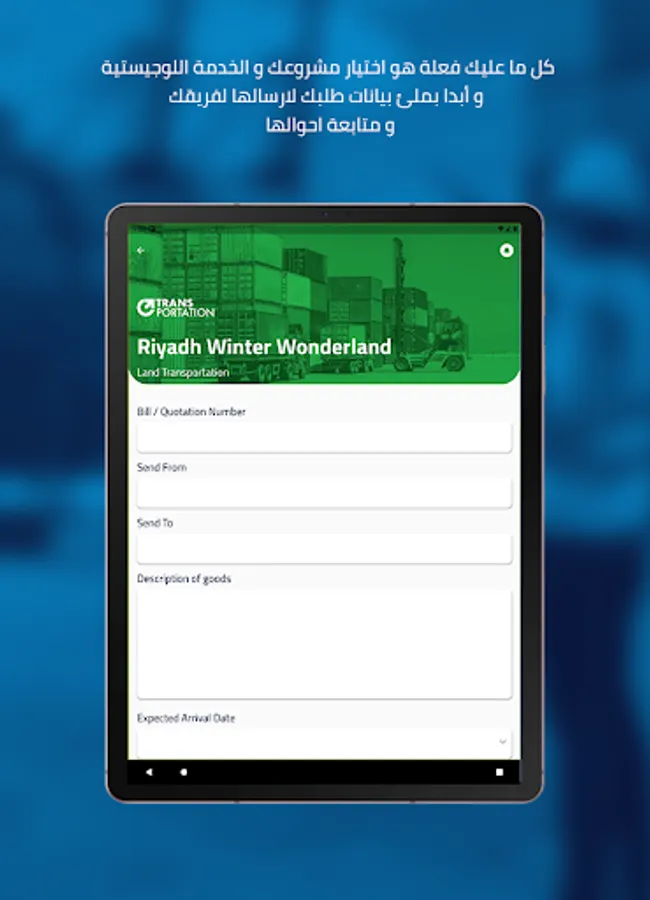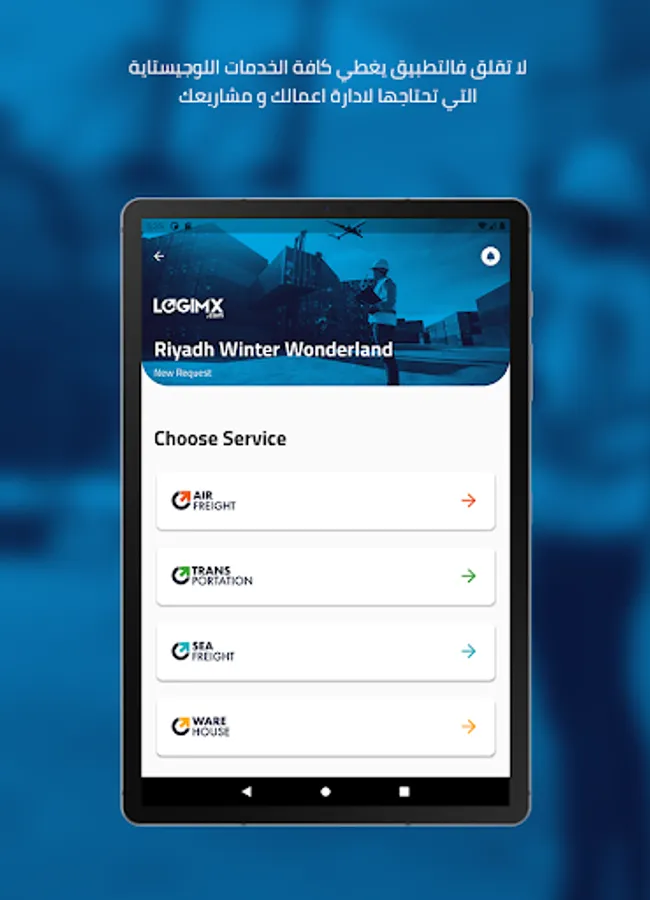The app offers versatility options of logistics ( air freight - sea freight - land transport - stock management).