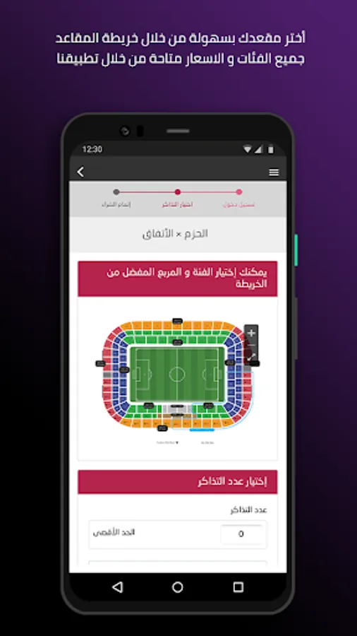 All app provides all Saudi Arabia football match details (date - time - location- packages - prices, etc) also it gives the user the ability to book his favorite seat in the match`s stadium but selects it from the application.