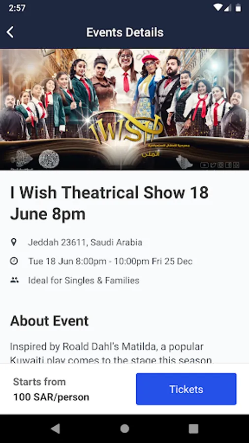Explore and book tickets for all current and upcoming events in Saudi Arabia. From the Saudi Premier League to WWE in Riyadh to a variety of events by Saudi Seasons, choose your pick and book tickets instantly through Sharek’s smooth payment system.