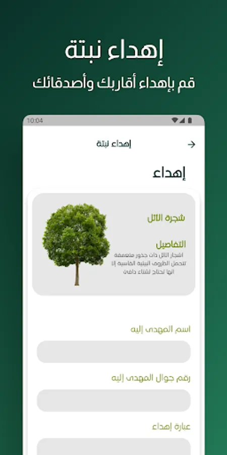 Developing the vegetation cover by providing the opportunity for donors, whether individuals or companies, to donate by planting trees in the areas targeted for afforestation in the Kingdom of Saudi Arabia, and authorizing authorized specialists from the Ministry of Environment, Water and Agriculture to plant them