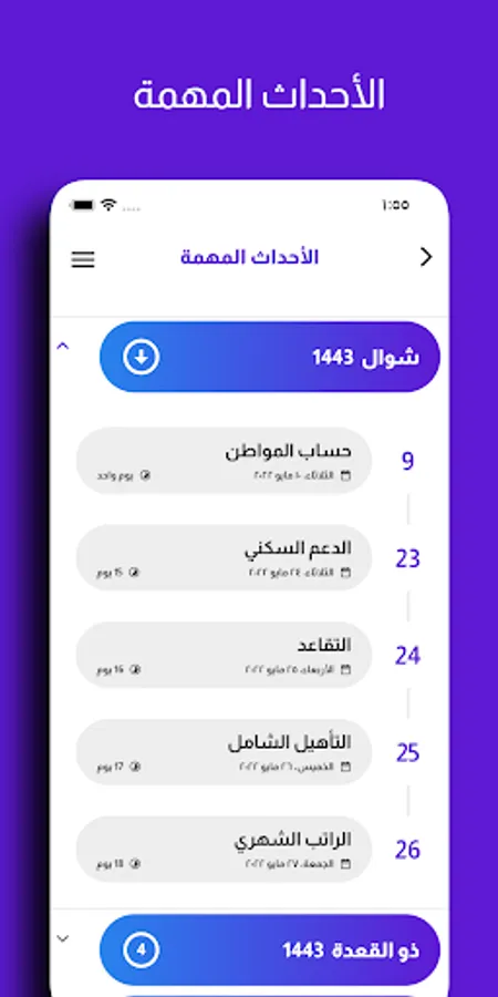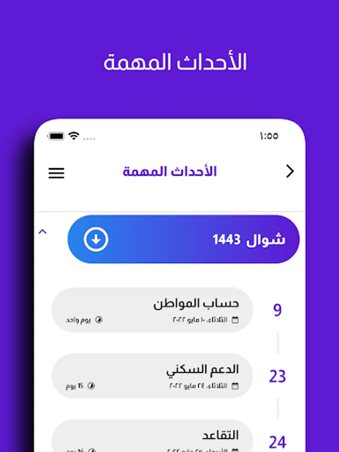 An application that serves individuals integrated to include a number of features such as scheduling personal and public tasks, a calendar of international events and days as well as alerts, as well as local events in Saudi Arabia, and additional services such as date conversion, age account and others.