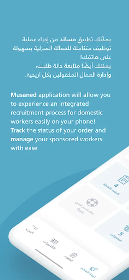 Musaned application allows you to experience an integrated recruitment process for domestic workers easily on your phone!