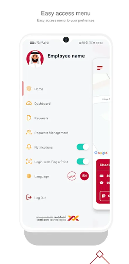 An application that automate check-in / check-out process in one click, in order to help organization with attendance tracking and managing shifts and requests