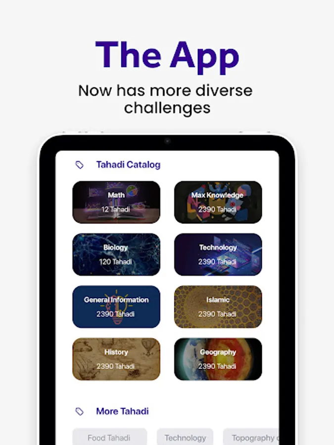 Tahadi is a competitive electronic game, based on learning with entertainment, with a scientific nature based on fun, excitement and enhancing the benefit of digital technologies, targeting all segments of Saudi society, in line with the goals of the National Transformation Program (2020) to achieve the Kingdom's vision (2030).